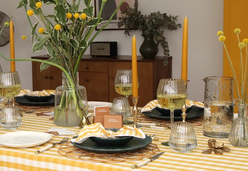 - Optional Yellow checked frill table cloth by Poetry (available in sizes: 170cm x 250cm, and 180cm round)